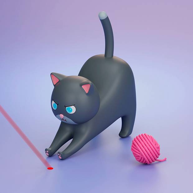 VetoPhylum - illustration 3d d'un chat en train de jouer avec une pelotte de laine et un faisceau laser.
